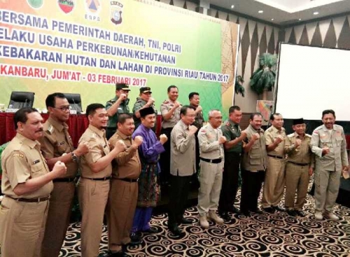Acara itu juga dilanjutkan dengan penandatanganan komitmen bersama pemerintah Daerah, TNI, Polri dengan pelaku usaha perkebunan/kehutanan dalam rangka pencegahan kebakaran hutan dan lahan di Provinsi Riau tahun 2017.Sementara itu, Sekdakab menyatakan bahwa sejak awal tahun pihaknya telah berupaya mengantisipasi terjadinya Karhutla.”Pemkab telah dan terus melakukan sosialisasi pentingnya pencegahan Karhutla kepada masyarakat,” lanjutnya.Jika semua pihak komit dan bahu-membahu melakukan antisipasi, Ia optimis target Riau bebas asap pada 2017 bisa tercapai.”Masyarakat harus menyadari bahwa membakar hutan terutama untuk membuka lahan sebenarnya sangat merugikan,” tukas Said Syarifudin. (adv)