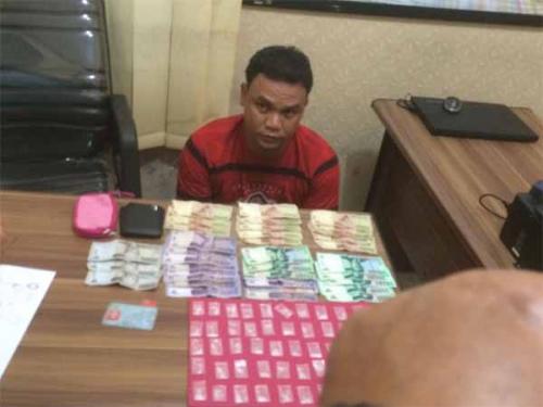 Curiga, anggota kemudian memungut dompet berlogo Love tersebut. Hasilnya ditemukan barang bukti sebanyak 50 paket kecil sabu.