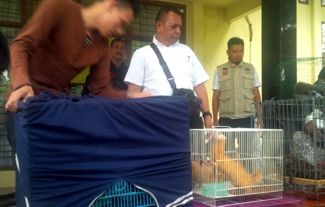 Petugas berhasil menyita 15 satwa dilindungi dan menciduk AH yang diduga sebagai pemilik satwa dilindungi tersebut.