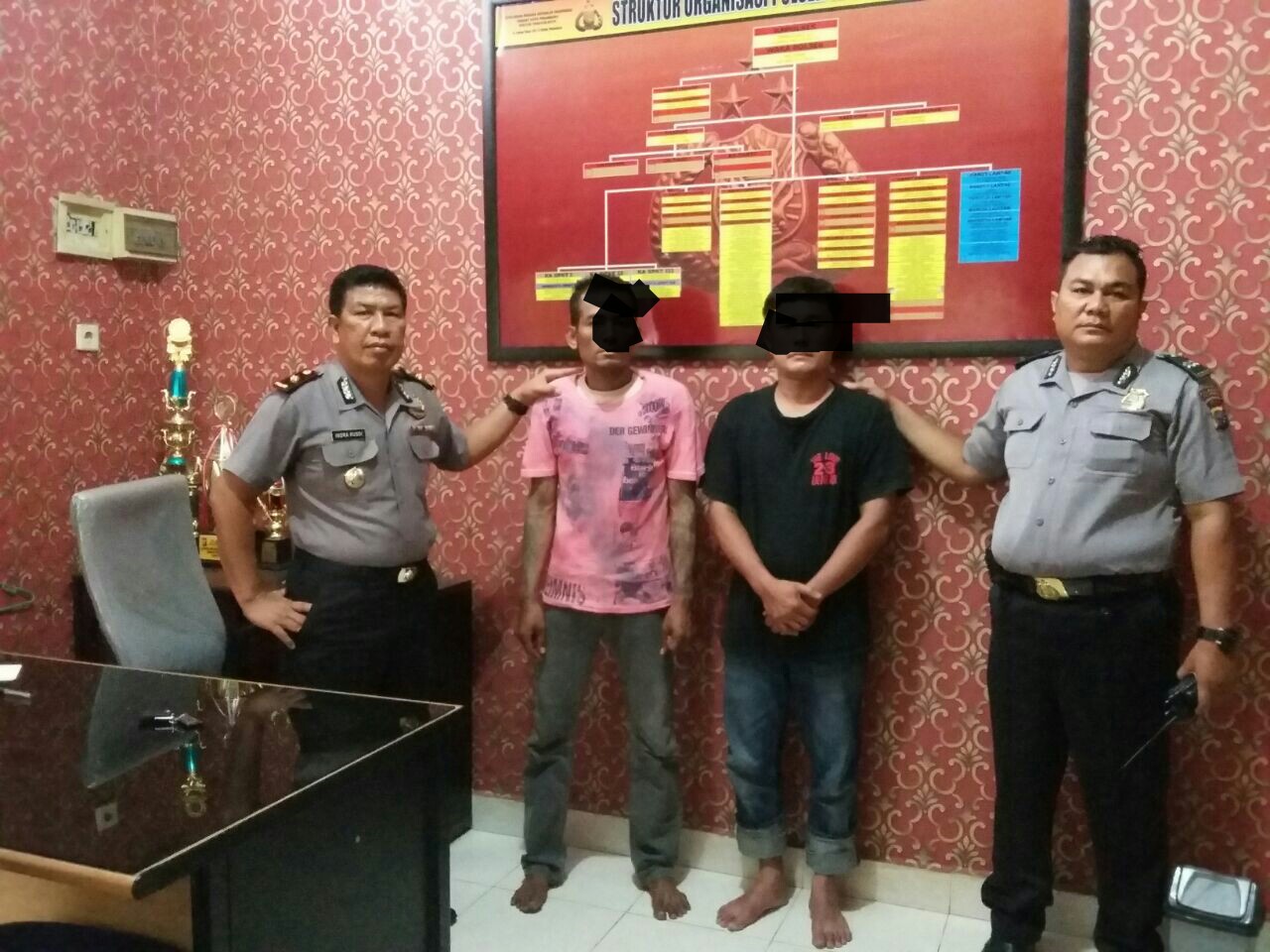 Penangkapan dilajukan pada Senin malam terhadap AG (34) dan ARH (41) tepatnya di Jalan Hangtuah Ujung Kelurahan Sail Kecamatan Tenayan Raya. Sementara korban S (36) mengalami kejadian pada Minggu malam.