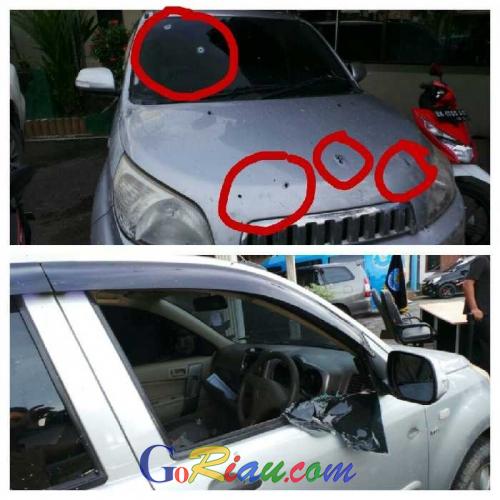 PEKANBARUPOS.COM (PPC),PEKANBARU – Badan Narkotika Nasional (BNN) Provinsi Riau berhasil mengamankan sedikitnya lima kilogram Sabu dan 1.599 butir pil ekstasi dari tangan terduga bandar Narkoba, beberapa hari lalu.Dua orang terpaksa ditembus timah panas dari senjata BNN Riau lantaran berusaha melarikan diri. Aksi penyergapan yang dilakukan petugas tersebut terlihat jelas dari kondisi mobil milik mereka, jenis Terrios warna silver.Kaca depan bolong akibat bekas peluru. Sementara kaca dekat supir pecah. Kondisi yang sama juga terlihat di bagian kap mesinnya, di mana terdapat beberapa lubang diduga bekas peluru petugas BNN Riau. Ban depan sebelah kiri juga kempis.Mobil Terrios diduga milik pelaku itu juga sangat kotor dan berlumpur. Dengan mobil ini lah mereka berusaha kabur dari kepungan hingga terpaksa dilumpuhkan aparat BNN Riau. Ketika itu ada lima tersangka ditangkap, di mana dua diantaranya ditembak.