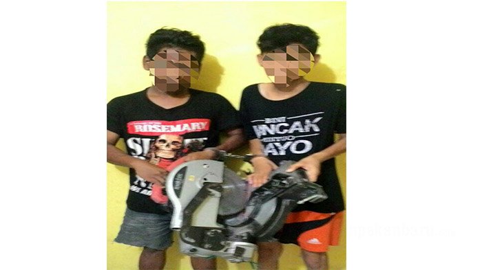 Keduanya ditangkap lantaran diduga telah melakukan aksi pencurian dengan pemberatan (curat) di toko perabot aluminium milik Arizal (52) yang beralamat di Jalan Soekarno Hatta, Kelurahan Maharatu, Kecamatan Marpoyan Damai, Kamis.