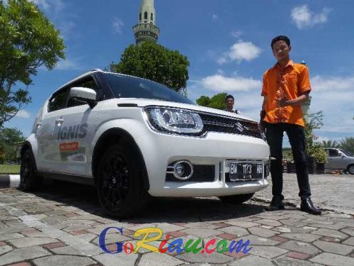 PEKANBARUPOS.COM (PPC),PEKANBARU – Usai menggelar launching keluarga terbarunya yang ber-genre Urban SUV, Suzuki IGNIS di dealer PT Sejahtera Buana Trada (SBT) Riau, jalan SM Amin (Arengka II), Pekanbaru, Jumat pagi.Manajemen Suzuki SBT Riau langsung menggelar test drive bersama awak media dan langsung konvoi ke Masjid Agung An Nur, jalan Hangtuah Pekanbaru untuk melaksanakan salat Jumat.Dalam kesempatan itu, mendapat kesempatan untuk mengendarai langsung Suzuki IGNIS yang masuk dalam kelas Mini SUV dari Suzuki ini.Berada dibalik kemudi, Suzuki IGNIS type GL MT langsung memberikan berbagai kenyamanan bagi pengendara, dengan posisi jok dengan tuas pedal yang cukup lapang. Ditambah lagi, berbagai fitur entertainment dan informasi yang tersaji lengkap.