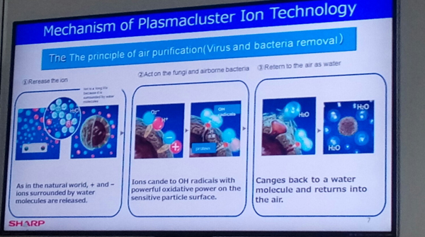 Dia mengatakan, Sharp juga telah melakukan uji klinis di 22 Lembaga kesehatan di seluruh dunia. Tidak hanya di rumah, Sharp juga membantu Anda mendapatkan udara bersih ketika di luar rumah. Car purifier merupakan produk yang khusus untuk ditempatkan dalam kendaraan.