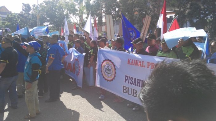 Massa aksi kemudian menyampaikan beberapa keluhan yakni terkait Upah Minimum Sektoran Provinsi (UMSP).