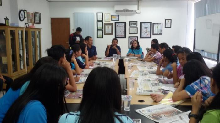 Para siswa dipersilahkan bertanya kepada wartawan tentang dunia pers.
