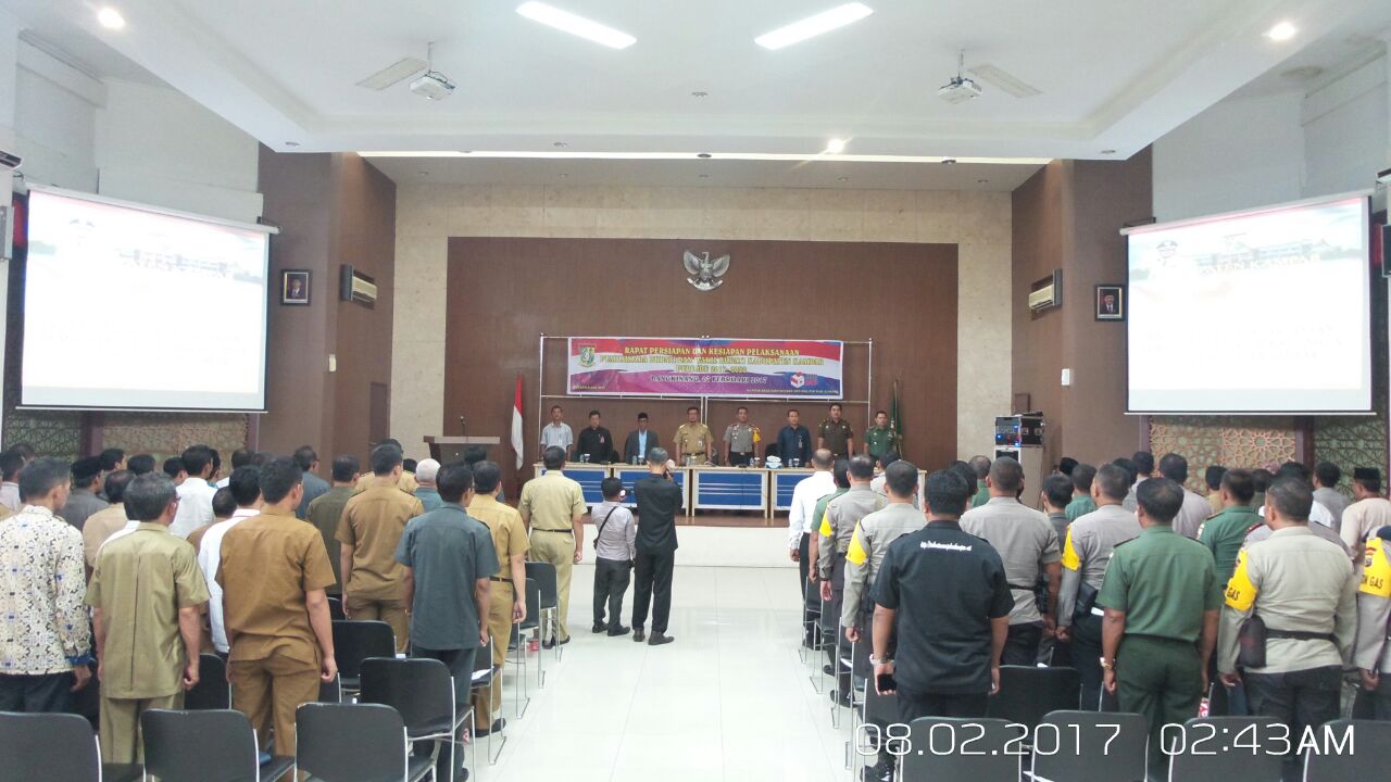 Rapat ini diikuti Para Asisten dan Kepala Dinas Terkait Jajaran Pemda Kampar, Komisioner KPUD Kampar, Pejabat Utama Polres Kampar dan Kodim 0313 KPR, Anggota Gakkumdu, Para Camat, Kapolsek, Danramil, Panitia Pemilu Kecamatan, Panitia Pengawas Kecamatan dengan jumlah peserta sekitar 120 orang. (adv)