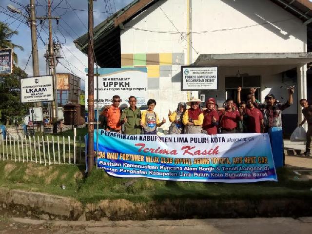 PEKANBARUPOS.COM (PPC),PEKANBARU – Bentuk kepedulian terhadap sesama, Riau Fortuner Hilux Club (RFHC) mengirim bantuan terhadap korban banjir dan tanah longsor di Kecamatan Pangkalan, Kabupaten Lima Puluh Kota, Sumatera Barat.