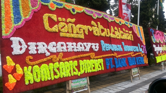 Setidaknya, terlihat pada papan bunga ucapan HUT RI ke 71 yang berjajar di depan kantor Gubernur Riau, Rabu (17/8/2016). Biasanya, ucapan papan bunga dan sejenisnya cukup satu saja yakni manajemen atau direksi yang dalam hal ini Direktur Utama Bank Riau Kepri sebagai perwakilan seluruh direksi maupun manajemen.