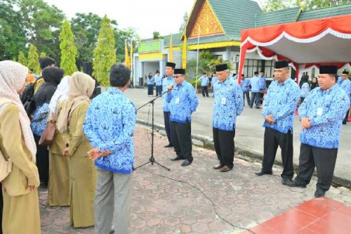 PEKANBARUPOS.COM (PPC),DUMAI – Dalam Upacara Hari Kesadaran Nasional masih terlihat sejumlah Aparatur Sipil Negara (ASN) dan honorer Pemerintah Kota (Pemko) Dumai yang datang terlambat. Bahkan, ada juga sejumlah ASN dan honorer yang tidak mengikuti upacara tersebut, Jumat di halaman Kantor Pelayanan Terpadu Jalan HR Soebrantas, Kota Dumai, Riau.Usai memimpin Upacara Hari Kesadaran Nasional sebagai Inspektur Upacara, Sekretaris Daerah Kota (Sekdako) Dumai Muhammad Nasir, langsung memberikan pengarahan dan bimbingan kepada ASN dan honorer yang datang terlambat.”Mereka (ASN dan honorer) yang datang terlambat ini sudah terlalu sering dan harusnya menjadi contoh bagi masyarakat. Kedepannya kita ingatkan agar tidak melakukan hal tersebut lagi,” ujar Nasir usai upacara.Menurutnya, ASN dan honorer yang datang terlambat ini terlebih dahulu dilakukan pembinaan. Kalau pun sudah tidak bisa lagi dibina, baru diambil tindakan tegas. Hal itu dilakukan, agar mereka tidak lagi mengulagi perbuatan tersebut.