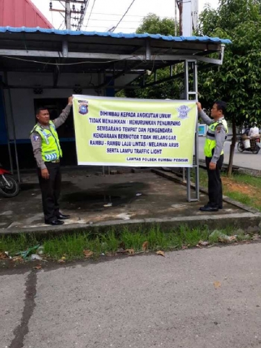 PEKANBARUPOS.COM (PPC),PEKANBARU – Mulai memasuki kegiatan Bulan Tertib Lalu Lintas Secara Tematik Tahap II, Satuan Lalu Lintas (Satlantas) Polresta Pekanbaru mulai melakukan sosialisasi di sejumlah tempat, termasuk dengan pemasangan spanduk.Sosialisasi pelaksanaan kegiatan Bulan Tertib Lalu Lintas Secara Tematik Tahap II, karena dalam waktu dekat Satlantas Polresta Pekanbaru akan dilakukan penertiban terhadap kendaraan bermotor, serta angkutan umum.Sasaran penertiban pada tahap II ini, Satlantas Polresta Pekanbaru akan menertibkan kendaraan angkutan umum, baik itu angkutan kota (angkot) atau lebih dikenal dengan oplet serta bus kota, yang berhenti sembarangan dalam menurunkan maupun menaikkan penumpang (ngetem).Untuk sosialisasi pelaksanaan kegiatan ini sudah mulai dilaksanakan tanggal 1 April 2017 lalu dan akan berlanjut hingga 15 April 2017 nanti. Sedangkan kegiatan Bulan Tertib Lalu Lintas Tahap II ini akan berlanjut hingga bulan Juni 2017 mendatang.
