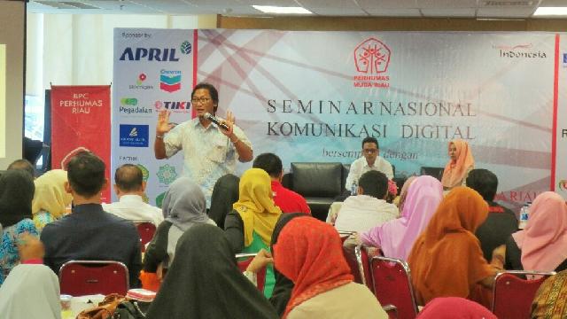 PEKANBARUPOS.COM (PPC),PEKANBARU -Kemajuan dunia digital akhir-akhir ini semakin berkembang pesat. Untuk itu, peran seorang Humas sangat dituntut lebih bijak dan berhati-hati dalam berselancar di dunia maya, khususnya di sosial media. Demikian disampaikan Djarot Handoko, Ketua BPC Perhumas Riau dalam Seminar Nasional Komunikasi Digital oleh Perhumas Muda Riau, Sabtu, di Gedung Graha Pena Pekanbaru.