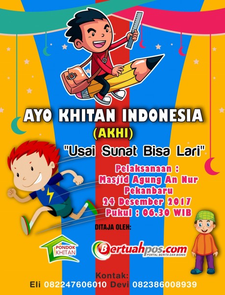 Agenda sunat massal ini diselenggarakan Pondok Khitan, bekerja sama dengan bertuahpos.com, Ikatan Remaja Mesjid Raya (IRMA Raya) An Nur, Minggu tanggal 24 Desember 2017 nanti. Aksi sunat massa itu akan dilaksanakan di Mesjid Raya An Nur, Jalan Hang Tuah, Pekanbaru.