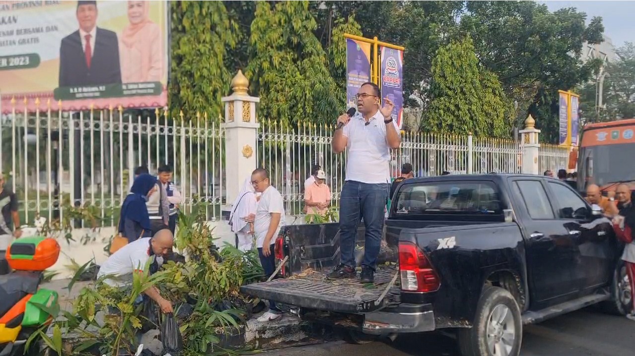 PEKANBARUPOS.COM – Pembina Samsat Provinsi Riau Berikan Apresiasi Berupa Bibit Pohon Produktif Kepada Wajib Pajak. Kegiatan ini dilaksanakan pada hari Minggu, 10 Desember 2023 di Depan Kantor Gubernur Riau, Jl Sudirman Pekanbaru bertepatan gelaran car free day.