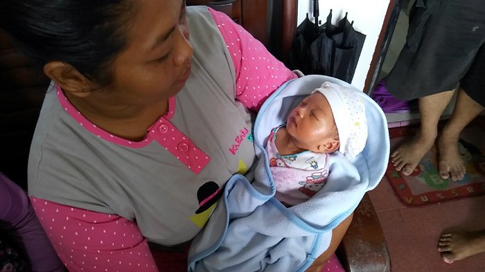 Saat ini bayi masih dalam perawatan bidan di Perumahan Mutiara Kulim Permai. (adv)
